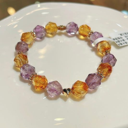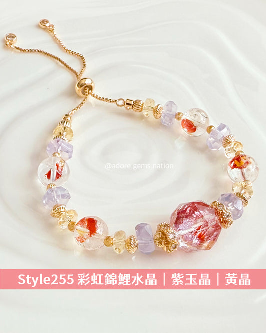 【#明月設計手鏈 Style 255】#彩虹錦鯉水晶 #紫玉晶 #黃晶