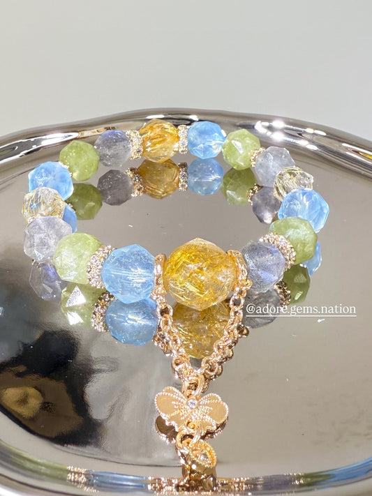 【Style 205 五行手鏈(水)】金髮晶 X 海藍寶 X 藍玉髓 X 藍紋瑪瑙