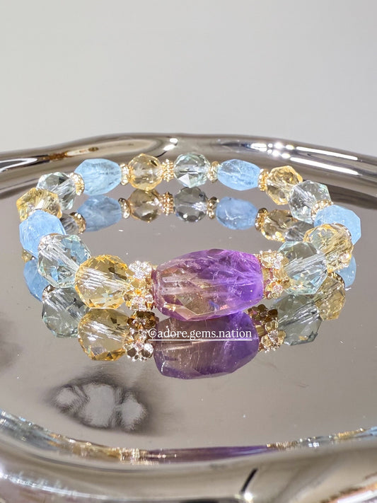 【#明月設計手鏈 Style259】紫黃晶|海藍寶|黃晶|綠晶
