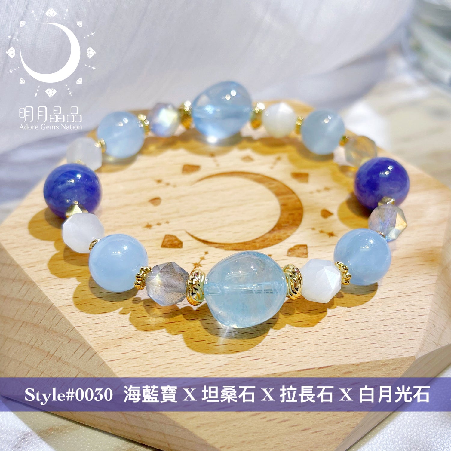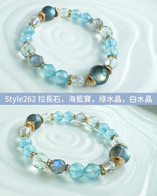 【#明月設計手鏈 Style 262】 拉長石,海藍寶,綠水晶,白水晶