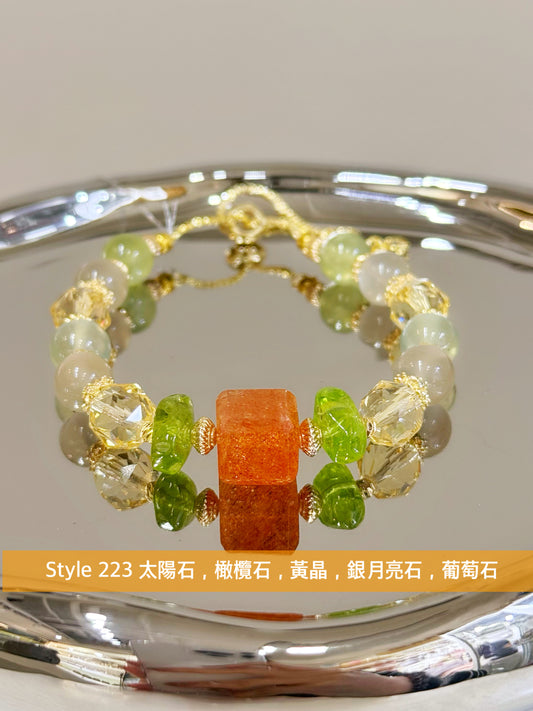 【明月設計手鏈 Style266】 太陽石,金葡萄石,葡萄石,綠水晶