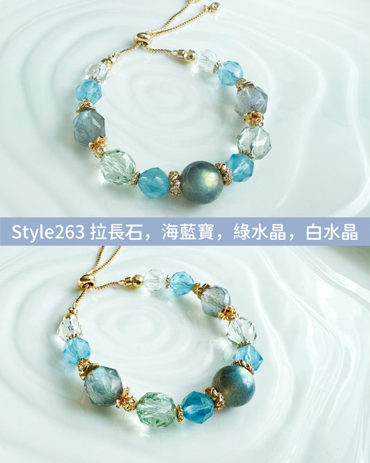 【#明月設計手鏈 Style 263】 拉長石,海藍寶,綠水晶,白水晶
