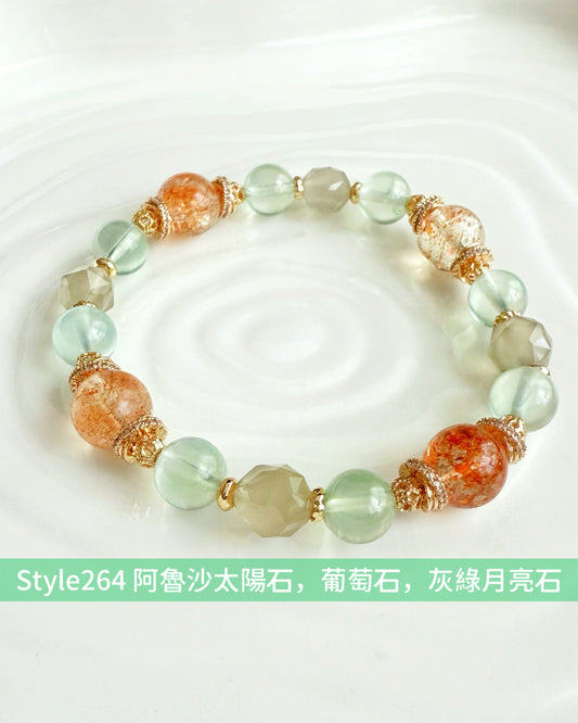 【#明月設計手鏈 Style 264】 阿魯沙太陽石,葡萄石,灰月亮石,灰綠月亮石