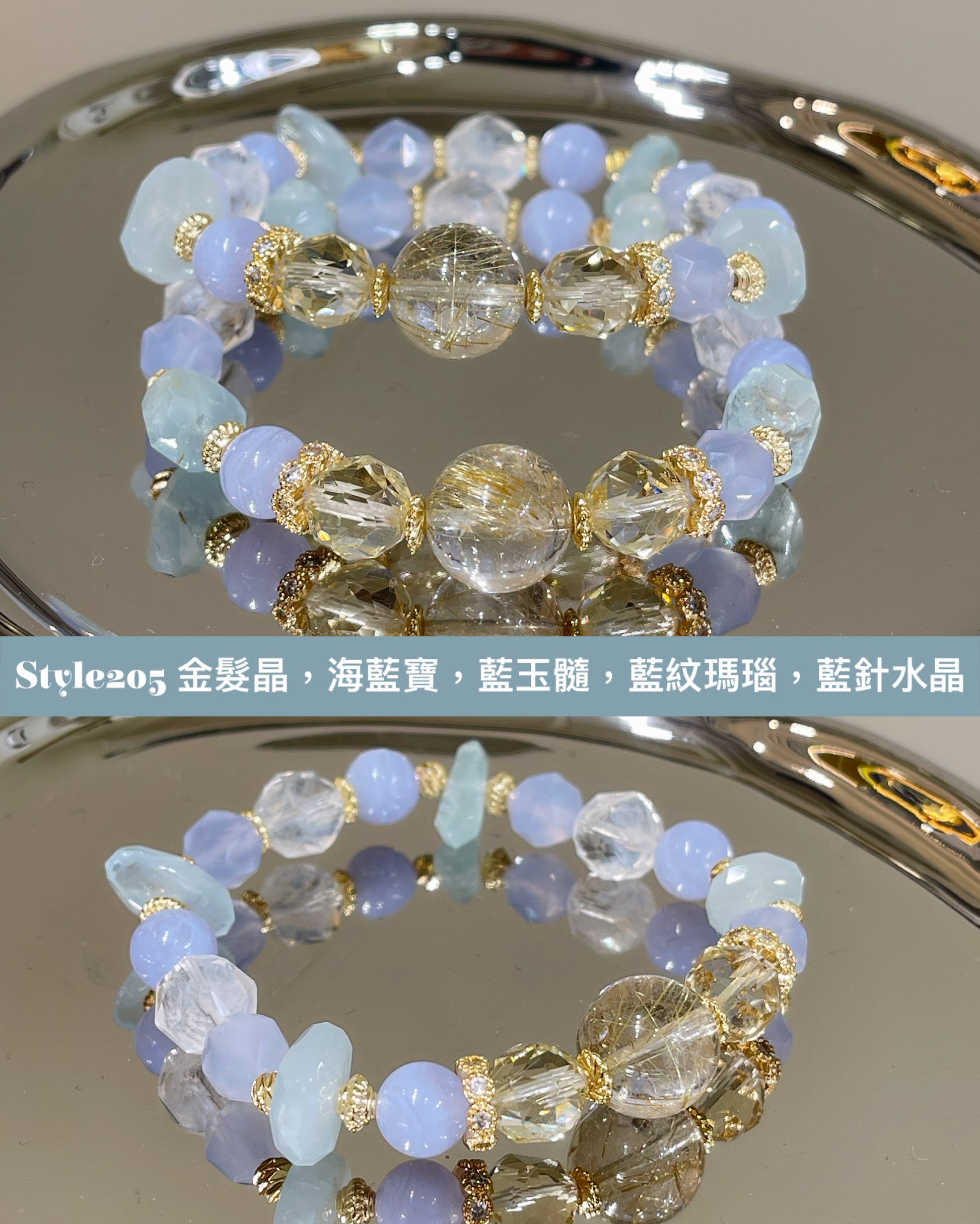 【Style 205 五行手鏈(水)】金髮晶 X 海藍寶 X 藍玉髓 X 藍紋瑪瑙